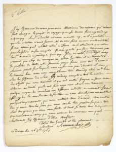 BEAUMARCHAIS Pierre-Augustin Caron de (1732-1799). L.A.S. «Beaumarchais», 26 septembre 1762, à MM. Airain et Sonet à Quinçay ; 1 page in-4, adresse (fentes au f. d'adresse). Il a dû changer son projet de voyage à Quinçay ce...