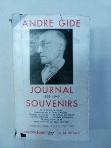 GIDE (André). Journal 1939-1949. Souvenirs. Paris, Gallimard, NRFpet. in-8, reliure de l'éditeur marron, dos lisse orné de filets dorés, jaquette papier. Jaquette papier déchirée ; un mors un peu fendu.