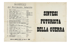 Marinetti Filippo Tommaso, Sintesi futurista della guerra. Milano: Direzione del Movimento Futurista [Stab. Tip. Taveggia], 20 settembre 1914.