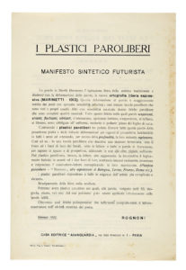Rognoni Angelo, I plastici paroliberi. Manifesto sintetico futurista. Pavia: Casa Editrice Avanguardia, gennaio 1922.