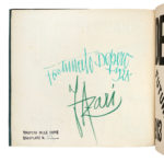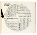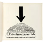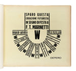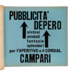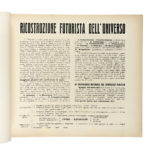 In-4° oblungo (mm 241x320). Carte [117], di cui una ripiegata (in realtà 118, essendo la carta Depero Futurista 1913-1927 | Edizione della Dinamo Azari Milano ripetuta due volte ab origine) + 4 veline, di cui una didascalica. Il volume si distingue per l'eccezionale ricchezza iconografica e grafica: bicromie, composizioni parolibere, testi teorici, manifesti, bozzetti al tratto e numerose fotoriproduzioni in bianco e nero e a colori, di cui 16 a piena pagina, tra cui: Ritratto di Fortunato Depero, con velina; Salone Depero alla Prima internazionale d'arte decorativa; Sala Trentina; Sala Depero al Gran Palais; Gruppo Depero nel padiglione futurista; Marinetti temporale patriottico; Ritratto psicologico dell'aviatore Azari; Padiglione del Libro; Radio incendio; Megafoni di bestemmie; Discussione del 3000; Personaggio meccanico, con velina; Mucca in montagna, a colori e con velina didascalica; Guerra festa; Disegni coloratissimi per scialli; Squisito al Selz, a colori e con velina. Il tutto stampato su carte di colori e grammature differenti, con impaginazioni ardite e sperimentali, perfettamente aderenti all'estetica tipografica futurista. La carta Depero/Glorifi/cato da/ Marinetti risulta rilegata al contrario ab origine. Lievi fioriture al frontespizio, impercettibili e marginalissime arrossature concentrate principalmente nella seconda parte del volume, un piccolo strappo marginale alla tavola Disegni coloratissimi per scialli, che non coinvolge l'inciso e uno, senza perdite, alla tavola Depero -Piatti di rame sbalzati, altrimenti splendido esemplare. Iconica legatura editoriale con piatti in spesso cartone, assemblati con bulloni e dadi metallici, completi di coppiglie. Titoli in nero e argento al piatto anteriore. Presenti entrambe le sguardie originali; quella anteriore reca un piccolo strappo marginale, senza perdite. Fioriture al piatto anteriore, con segni di ossidazione, mentre quello posteriore mantiene l'originario azzurro, solo marginalmente sbiadito. Uno dei 1000 esemplari numerati a mano al verso del frontespizio, impreziosito dalla firma autografa di Fortunato Depero (datata 1928) e da quella, rarissima, di Felice Azari. (1) Opera iconica e rivoluzionaria, Depero futurista è unanimemente considerata una delle massime espressioni del futurismo italiano e, più in generale, una pietra miliare nella storia del libro d'artista e del graphic design del XX secolo. Universalmente conosciuto come Imbullonato, per la sua inconfondibile e provocatoria rilegatura – due grossi bulloni con coppiglie progettati da Fedele Azari – il volume sfida radicalmente le convenzioni editoriali dell'epoca, affermandosi come oggetto d'arte totale, manifesto tridimensionale della modernità e del pensiero futurista, che può essere, significativamente, "smontato e rimontato". Fortemente visivo, Depero Futurista rappresenta «un punto nodale e di svolta dell'editoria futurista, prototipo di tutta una serie di sperimentazioni tipografiche che caratterizzeranno il Novecento europeo e anticipatore, in un certo senso, del libro-oggetto contemporaneo» (Cantieri, Bibliohaus, n. 28, aprile–giugno 2014, p. 3). Formalmente edito dalla Dinamo-Azari nel 1927, fu in realtà stampato presso la modesta tipografia Mercurio di Rovereto. È, come osserva la critica, «una delle icone tipografico-editoriali del Novecento europeo, punto di svolta delle innovazioni tipo-grafiche del Futurismo, summa della creatività del suo Autore [...] così come del suo editore-ideatore, Fedele Azari [...]» (Cantieri, cit., p. 7). Concepito come un libro-macchina, è «il portabandiera dei libri taglienti, esplosivi e luminosi, icona della modernità urlante novecentesca» (Cantieri, cit., p. 16). Non segue una struttura narrativa tradizionale, ma si presenta come un collage dinamico e sperimentale, in cui convivono scenografia teatrale, grafica industriale, illustrazione, pubblicità e design. Il testo si articola su carte di vario formato, grammatura e colore; le parole si dispongono in direzioni non convenzionali - in diagonale, a spirale, a blocchi geometrici - e le lettere variano per dimensione e peso, contribuendo a un linguaggio visivo che anticipa il moderno graphic design e reinventa radicalmente lo strumento tipografico. L'opera ha inoltre un forte valore teorico e programmatico. Rappresenta una sintesi efficace della poetica di Depero ed è anche un eccellente esempio di autopromozione. L'artista la concepì, infatti, come un portfolio completo, da utilizzare per promuovere la propria attività all'estero, in particolare durante il soggiorno a New York nel 1928. Depero futurista «rappresenta il fulcro della rivoluzione tipografica futurista, vanto della 'Tipografia Mercurio', la più modesta delle tipografie roveretane, che lo stamparono su una pesante macchina piano-cilindrica in ghisa, acciaio e legno», conferendo all'opera «un solido aspetto artigianale, che in qualche modo la rende molto meno 'meccanica' di quanto si pretende» (Cantieri, cit., pp. 17–18). Per usare le parole di Nicoletta Boschiero, il Depero futurista è « [...] una delle copie più alte concepite dall'avanguardia di questo secolo. Forse la più importante di Depero, per provocazione e qualità. Non si sarebbe potuto realizzare che a mano, direttamente in tipografia e in una piccola tipografia all'antica» (Cantieri, cit., pp. 19–20). I costi di produzione furono elevati e includevano anche l'assemblaggio manuale di ogni copia, effettuato con cura artigianale. In definitiva, l'opera è «[...] anche il trionfo della provincia italiana operosa e modesta, dove maestranze spesso anonime, ma di grande capacità e talento riescono a realizzare un libro-oggetto di grande bellezza e complessità tecniche, un unicum assoluto» (Cantieri, cit., p. 20).