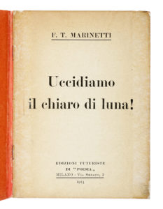 Marinetti Filippo Tommaso, Uccidiamo il chiaro di luna! Milano: Edizioni Futuriste di Poesia, 1911.