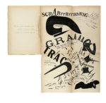 In-8° (mm 193x125). Pagine 107, [7]. Con 4 tavole parolibere fuori testo, più volte ripiegate. Esemplare in barbe, con numerose poesie parolibere nel testo. Tracce di incollaggio al margine interno delle tavole, una pecetta di rinforzo al verso della tavola Après la Marne e uno strappo, senza perdite, a Une assemblèe tumultueuse; una mancanza marginale, senza perdite di inciso, alle ultime due pagine. Brossura editoriale con una composizione parolibera in nero e rosso al piatto anteriore. Strappi al dorso, completamente staccato il piatto anteriore e parzialmente staccato quello posteriore. (1) Si veda lotto precedente.