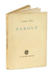 In-8° (mm 190x125). Ottima copia intonsa. Brossura editoriale con alette e titoli in nero e blu al piatto anteriore e al dorso. Lievi mancanze alla cuffia inferiore e altri minimi difetti. Copia con firma di autenticazione dell'Autore. (1) Prima edizione di questa raccolta di poesie scritte tra il 1932 e 1934, apparse su diversi periodici.