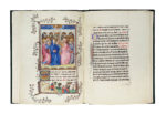 In-4° (mm 285 x 200). Riproduzione dettagliata a colori del codice originale, con numerose vignette a piena pagina. Legatura in velluto verde con decori floreali e stemma della Biblioteca di Gian Giacomo Trivulzio in oro al piatto anteriore; tagli dorati e sguardie in seta verde. Entro cofanetto di velluto bianco con stemma in metallo al piatto, con minime tracce d'uso. Con volume di Commentario. Uno dei 199 esemplari riservati all'Italia e numerati IT 1 - IT 199, su una tiratura complessiva di 980 copie. (2) Riproduzione in facsimile del libro d'ore di Torino-Milano. Originariamente, il libro d'ore era una parte fondamentale delle Très Belles Heures de Notre-Dame commissionate da Jean de Berry (1340-1416). Per via ereditaria, l'opera incompleta giunse in possesso del conte Johann von Holland, che ne commissionò il completamento ad un artista fiammingo, molto probabilmente Jan van Eyck (1390-1441). Dopo essere appartenuto a Vittorio Amedeo II Duca di Savoia (1666-1732), il codice passò nelle mani della famiglia Trivulzio, per poi essere trasferito alla Biblioteca di Arte Antica di Torino, dove è conservato ancora oggi.