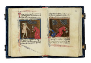 In-12° (mm 145x103). Legatura in velluto di seta, lapislazzuli, lamina argentata e dorata. Riproduzione integrale in oro zecchino 23Kt. Presente il volume di Commentario. Il tutto entro cofanetto originale in velluto blu, con doppio scomparto, fodera in raso e fermaglio per la chiusura. Ampie tracce di polvere al cofanetto e lievi fioriture ai tagli del volume di Commentario, che presenta una scoloritura al piatto posteriore. Tiratura in 999 copie in cifre arabe. Presente anche il Certificato di Garanzia e Autenticità. (3) Riproduzione dettagliata a colori del codice originale della leggenda della vita di Santa Margherita e Sant'Agnese, realizzata sul finire del XIII secolo dal cosiddetto "maestro di Gerona", e ispirata ai modelli delle martiri bizantine. Il manoscritto è composto di due sezioni unite insieme probabilmente all'inizio del Trecento; solo la storia della Passione di Margherita di Antiochia è illustrata con immagini miniate che si pongono come commento visivo.