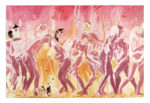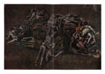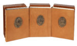 3 volumi in-4° (mm 320x225). Ottimo esemplare in barbe con, complessivamente, 100 bellissime tavole a colori di Wolfgango Peretti Poggi, una per ogni canto, sciolte e fuori testo, molte delle quali a doppia pagina e tripla pagina. Una piega al margine inferiore della tav. XXVII del Paradiso. Legatura in piena pelle con titoli al dorso a 4 nervi e medaglione in bronzo sbalzato col volto di Dante, Virgilio e Beatrice al piatto anteriore rispettivamente del primo, secondo e terzo volume; sguardie in seta. Qualche macchiolina ai piatti e lievi segni di usura. Entro cofanetti editoriali in piena pelle, che presentano trascurabili spellature e altre minime mende. Uno dei 1000 esemplari di lusso, su una tiratura complessiva di 1100 copie, firmato dall'Artista al colophon del terzo volume. (3) Edizione pubblicata in occasione del quinto centenario della prima edizione a stampa eseguita a Foligno nel 1472.