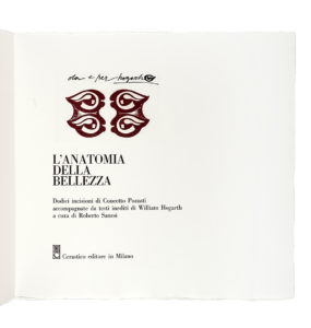 Pozzati Concetto, L'anatomia della bellezza. Dodici incisioni [...] accompagnate da testi di William Hogarth. Milano: Cerastico editore, [1974].