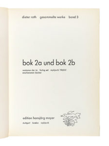 Roth Dieter, Bok 2a und Bok 2b. Stuttgart: Hansjorg Mayer, 1973.