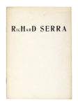In-8° (mm 240x168). Carte [4]. Con 5 riproduzioni fotografiche in bianco e nero nel testo e il ritratto fotografico dell'Artista. Brossura editoriale con il nome dell'artista riprodotto al piatto anteriore. Ottima copia. (1) Raro catalogo originale della prima mostra personale di Richard Serra, tenutasi in Italia presso la Galleria La Salita di Roma il 24 maggio 1966. Un evento che, per radicalità e audacia, è oggi considerato una delle mostre più significative e controverse degli anni Sessanta, uno dei momenti fondativi dell'arte d'avanguardia contemporanea, nonché un punto d'origine per molte pratiche espositive dell'arte concettuale e post-minimalista. Allestita durante il soggiorno europeo dell'artista – tra Parigi, Firenze e Roma – la mostra presentava diciannove opere/installazioni, tra cui gabbie contenenti animali vivi e impagliati, assemblaggi materici e collage scultorei di forte impatto fisico e simbolico. L'intento era dichiaratamente polemico nei confronti dell'illusione pittorica, in favore di una ricerca fondata sulla presenza reale, il corpo, lo spazio e la materia. Il titolo della mostra sintetizzava l'ambizione di confondere i confini tra arte e realtà, tra documento, corpo e installazione. L'intervento suscitò un vasto scandalo: il gallerista Gian Tomaso Liverani fu denunciato per aver esposto "articoli non pertinenti alla sua licenza commerciale", ma fu successivamente assolto anche grazie alle testimonianze di Giulio Carlo Argan e Palma Bucarelli in difesa della libertà artistica. Considerata oggi una pietra miliare della prima fase di Serra, la mostra prefigurava, in chiave sperimentale, elementi che saranno centrali nella sua intera carriera, dalla relazione tra oggetto e spazio fino alla fisicità scultorea come esperienza. Il gesto anticipava anche celebri opere successive di altri artisti, come Kounellis con 12 Cavalli o Maurizio Cattelan con Novecento.