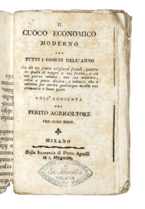 Il cuoco economico moderno per tutti i giorni dell’anno (…) coll'aggiunta del perito agricoltore per ogni mese. Milano: nella Stamperia di Pietro Agnelli in s. Margarita, (circa 1814).