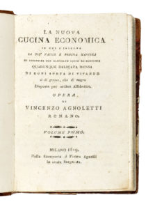Agnoletti Vincenzo, La nuova cucina economica... Milano: nella stamperia di Pietro Agnelli, 1819.