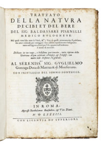 Pisanelli Baldassarre, Trattato della natura de cibi et del bere... In Roma: appresso Bartholomeo Bonfadino & Tito Diani, 1583.