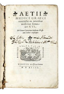 Aetius Amidenus, Contractae ex veteribus medicinae sermones XVI. Venetiis: ex officina Farrea, 1543.