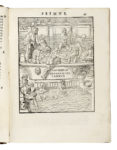In-4° (mm 235x168). Pagine [16], 308 (i.e. 325), [31]. Ricco di illustrazioni xilografiche, iniziali incise, numerosi errori di numerazione delle pagine, marca editoriale al frontespizio e al colophon. Qualche fioritura ad un paio di pagine, alcune pallidamente ingiallite, e altri trascurabili segni del tempo, buon esemplare. Piena pergamena coeva con titoli manoscritti al dorso (parte di dorso mancante e difetti). (1) Quarta edizione del De arte gymnastica, considerato il primo trattato di medicina sportiva. Opera pionieristica, è tra le prime a esplorare il valore terapeutico dell'attività fisica e dello sport nella cura di malattie e disabilità, oltre a rappresentare un contributo fondamentale allo studio della ginnastica nel mondo antico. Garrison-Morton-Norman 1986.1. Krivatsy 7784.