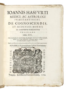 Virdung Johann, De cognoscendis, et medendis morbis ex corporum coelestium positione Libri IIII… Venetiis: Ex Officina Damiani Zenarii, 1584.