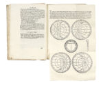 In-4° (mm 235×170). Carte [12], 228. Frontespizio con marca xilografica, testo in carattere corsivo, romano e greco, arricchito da numerose tabelle e figure incise in legno. Presente una carta con testo e tavola xilografica più volte ripiegata in carta spessa tra i fascicoli F e G che serve a costruire la propria volvelle. Forellino al margine interno del frontespizio, piccola mancanza all'angolo inferiore esterno di Y4, alcune macchioline a 3D1. Bell'esemplare in barbe, con occasionali e lievissimi aloni e leggere uniformi ingialliture del tempo. Legatura in pieno cartonato posteriore in stile. (1) Bellissimo esemplare della prima e unica edizione di questo raro trattato attribuito a Johann Virdung von Hassfurt, dedicato alla cosiddetta astrologia medica, disciplina che fonda la diagnosi e la cura delle malattie sull'influenza degli astri, associando ogni parte del corpo a uno specifico segno zodiacale. L'opera, curata da Giovanni Paolo Gallucci (talvolta indicato anche come autore), rappresenta una delle più articolate sintesi del sapere medico-astrologico rinascimentale. Oltre al testo principale, il volume raccoglie anche la Iatromathematica attribuita a Ermete Trismegisto, i Prognostica dello pseudo-galenico Imbrasio di Efeso, testi di Marsilio Ficino e contributi dello stesso Gallucci. Opera particolarmente rilevante per chiarezza espositiva e rigore editoriale, è introdotta da una sezione teorica (l'Introductio), posta nelle ultime sei carte, che funge da guida all'astrologia: contiene infatti tavole esplicative, schemi e una terminologia semplificata per agevolare la comprensione delle nozioni di base. Cantamessa, Biblioastrology.com, n. 8447.