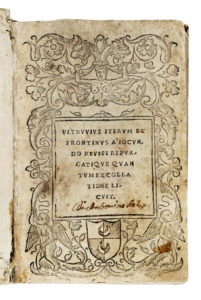 Vitruvius Marcus Pollio, Vitruvius iterum et Frontinus à Jocundo revisi repurgatique quantum ex collatione licuit. (Al colophon:) Florentiae: sumptibus Philippi de Giunta Florentini, 1513 mense Octobri.