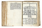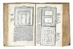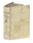 Due parti in un volume in-8° (mm 144x95). Carte: [4], 187 [i.e. 188]; 34 [i.e. 24], [24]. Con oltre cento xilografie nel testo. Frontespizio entro elegante cornice xilografica pallidamente brunito e con stemma araldico manoscritto. Carte π3 - π4 con restauri all'angolo esterno inferiore con perdite di testo, carta Z3 con piccolo restauro marginale senza perdite. Fioriture sparse e macchioline, qualche carta con pallide gore marginali in particolare le ultime carte del fascicolo Z8 e i fascicoli AA4 e a8. L'ultima carta con qualche forellino e parzialmente staccata senza perdite di testo, nel complesso comunque una buona copia con belle illustrazioni. Piena pergamena coeva semi-flessibile leggermente staccata con titoli manoscritti al dorso con una piccola mancanza. (1) La prima edizione di Vitruvio in piccolo formato. Il testo, preparato da Giovanni Giocondo da Verona, fu pubblicato per la prima volta a Venezia nel 1511 e le xilografie di questa versione Giunta del 1513 sono copie più piccole dei blocchi del 1511. Nel libro decimo troviamo anche la descrizione di alcune macchine d'assedio. La seconda parte, con numerazione separata, è un breve trattato del console Frontino sugli acquedotti romani.