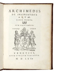 Archimedes, De insidentibus aquae. Venetiis: apud Curtium Troianum, 1565.