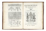 2 parti in un volume in-4° (mm 208x150). Carte 6, 16 con diagrammi nel testo. Entrambe le parti con proprio frontespizio e marca xilografica. Pallido alone al margine superiore delle ultime 5 carte e brachetta all'ultima carta della prima parte ma per il resto buona copia in piena pelle moderna con nervi al dorso. (1) Editio princeps del trattato di Archimede sui corpi galleggianti. Tradotto in latino dal matematico italiano Niccolò Tartaglia (1500-1557), è diviso in due parti e decorato da circa quaranta figure geometriche nel testo. Ai frontespizi compare la bella marca tipografica di Trojanus Curtius, libraio-tipografo attivo a Venezia dal 1537 al 1566. Adams A-1534; Riccardi I, 46.