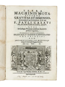 Casati Paolo, Terra machinis mota, eiusque gravitas, et dimensio, dissertationes duae... Romae: Typis Haeredum Corbelletti, 1655.