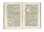 In-folio (mm 290x202). Pagine [6], 52, [2]. Ultima carta bianca applicata al contropiatto posteriore. Stemma del Dedicatario inciso in rame al frontespizio e molte illustrazioni nel testo incise in legno, raffiguranti macchinari e diagrammi; testatine, finalini, capilettera e fregi xilografici. Esemplare marginoso in cartonato rustico posteriore con titolo anticamente manoscritto al dorso (minimi difetti). (1) Rarissima prima edizione di questo importante lavoro del gesuita Paolo Casati, esposta al Collegio romano dove egli era all'epoca un giovane docente. L'opera si articola in due parti, o dissertazioni, concepite sotto forma di dialogo fra tre illustri personalità scientifiche dell'epoca, tutte e tre da poco scomparse: Galileo, padre Mersenne e padre Guldinus. Nella prima parte sono comparate tra di loro le forze prodotte dalle varie macchine, mentre nella seconda si investiga la gravità della Terra. L'opera, che venne poi rimaneggiata e ampliata dal suo Autore e conobbe una seconda edizione nel 1658, singolarmente propone il personaggio di Galileo in chiave positiva, a pochi anni dalla sua condanna. Cfr. Carli-Favaro 246; Cinti, Bibl. Galileiana, 134 (edizione del 1658); Riccardi I, 270; Thorndike VIII, 179.