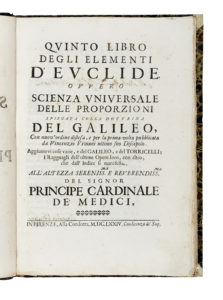 Euclides, Viviani Vincenzo, Quinto libro degli elementi d'Euclide, ovvero scienza universale delle proporzioni spiegata colla dottrina del Galileo... In Firenze: alla Condotta, 1674.