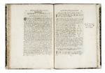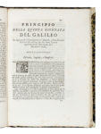 In-4° (mm 255x182). Pagine: [12], 149, [3]. Errori nella segnatura del primo fascicolo, ma presenti tutte le carte. Occhietto con titolo: Scienza universale delle proporzioni, fregi e iniziali xilografici. Pallide fioriture e macchiette marginali, ma nel complesso buona copia in barbe, in mezza pelle ottocentesca (minimi difetti). Al verso del frontespizio, in grafia coeva, "Al molto (reverendo?) Sig Niccolo Stenoni | Vincenzo Viviani". Niccolò Stenone (1638-1686), è stato un naturalista, geologo, anatomista e vescovo cattolico danese considerato il padre della geologia e della stratigrafia. (1) Rara prima edizione, prima impressione (priva dei fascicoli aggiuntivi e delle due tavole ripiegate presenti nell'edizione sempre datata 1674 al frontespizio, ma di fatto stampata nel 1676). Importante opera scientifica curata dall'ultimo discepolo di Galileo, Vincenzo Viviani (1622-1703), allievo anche di Evangelista Torricelli, che presenta il Libro V degli Elementi di Euclide secondo una nuova disposizione, spiegando la teoria delle proporzioni con la "dottrina del Galileo". Contiene infatti la prima stampa di un manoscritto galileiano sulla teoria eudossiana delle proporzioni (scritto nel 1641 e rimasto inedito fino ad allora), dettato da Galileo a Torricelli.