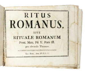 Ritus Romanus sive Rituale Romanum Pont. Max. Pii V. Pars III. pro elevando Thesauro. Typis Romae, Anno M D. L.I.I. [ma post 1752].