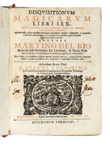 Del Rio Martin Antonio, Disquisitionum magicarum libri sex, quibus continetur accurata curiosarum artium, & vanarum superstitionum confutatio... Venetiis: apud Iacobum Sarzinam, 1640.