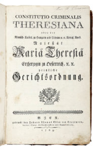 Constitutio criminalis Theresiana... Wien: gedruckt bey Johann Thomas Edlen von Trattnern..., 1769.