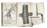 In-folio (mm 353x222). Pagine: [16] 282, I-XXVI, XXX-LVI, 20; le 3 carte di tavola ripiegate si inseriscono nella sequenza di numerazione in numeri romani XXVII-XXIX. Copia pallidamente brunita, piccola mancanza marginale ai primi fascicoli senza perdite, macchiette sparse, strappo alla carta b4 e altri segni del tempo. Le carte di tavola ripiegate un po' gualcite, strappo con minima perdita di testo alla carta di tavola XXVII. Piena pelle coeva con titoli e fregi in oro entro tassello in marocchino al dorso, legatura stanca con mancanze, abrasioni e altri difetti. (1) Prima edizione con la rara appendice intitolata "Istruzioni per l'Ordinanza penale teresiana" (20 pagine), ma priva della seconda appendice "Avvertenze segrete" (10 pagine), riservate esclusivamente all'uso giudiziario. Le illustrazioni presenti raffigurano scene di tortura e strumenti come viti per le gambe e i pollici, oltre a cavalletti. Il testo affronta diverse tipologie di pene, inclusa quella capitale. Quest'opera costituisce l'ultimo codice penale pubblicato in Austria che contempla l'uso della tortura. "La diffusione di questa minacciosa pubblicazione fu ostacolata dal governo e soppressa subito dopo la sua uscita" (Hayn/G.). La Constitutio fu edita nel 1769 in lingua tedesca, ceca e italiana, ed è considerata una delle opere più significative nella storia del diritto europeo.