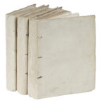 3 volumi in-4° (mm 250x195). Pagine: VIII, 440; VIII, 116 [i.e. 416]; [4], 167, [1] + 65 tavole calcografiche ripiegate inframmezzate al testo e rilegate accanto al testo di riferimento, rendendo così non indispensabile l'indice finale di quattro carte, assente infatti da questa particolare copia. Vignetta calcografica con frase dell'Autore al frontespizio del primo volume, vignetta xilografica al frontespizio del secondo, frontespizio su doppia pagina nel terzo volume, iniziali e fregi xilografici. Carte occasionalmente fiorite/brunite in modo pallido, fascicoli occasionalmente lenti, qualche alone e macchiolina marginale, ma nel complesso copia estremamente genuina in barbe e cartonato rustico coevo. (3) Prima edizione, rarissima sul mercato e a trovarsi così completa e genuina, di una delle più rare ed importanti opere italiane di botanica del Settecento ad opera di Filippo Arena, un prete quasi sconosciuto ai suoi tempi, che anticipa alcuni aspetti del lavoro di Mendel sulla genetica, e scopre per primo l'importante funzione degli insetti nel processo di impollinazione. Il frontespizio tipografico su doppia pagina all'inizio del terzo volume reca il titolo: "La natura e coltura | de' fiori | fisicamente esposta in due trattati | Con nuove ragioni, osservazioni, e sperienze. | A vantaggio de' Fioristi, Fisici, Botanici, ed Agricoltori. | Per il P. Filippo Arena | Piazzese | della Compagnia di Gesù | Professor di Mattematica [sic] nell'Imperial Collegio di Palermo. | Tomo terzo | Rami sessantacinque, che rappresentano tutte le specie de' Fiori più nobili nella lor forma, e grandezza naturale. | In Palermo Appresso Angelo Felicella MDCCLXVII. Impr. Del Castillo V.G. )( Imp. Napoli R.C.P."Pritzel 283.