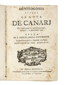 Basilio: della Concezione (frate), Ornitogonia ovvero la cova de' Canarj per facilitarne la moltiplicazione, educarli, e mantenerli sani. In Roma: 1794.