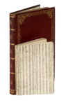 In-8° (149x102). Pagine: 70. Fregio xilografico con volo di canarini al frontespizio parzialmente staccato. Qualche fioritura e macchiolina, comunque buona copia in cartonato coevo rivestito con carta decorata. SI AGGIUNGE: Gasparini Vincenzo, Avifauna Marchigiana... Fano: Società Tipografica Cooperativa con legatoria, 1894. Non collazionato. Tela decorata in oro con titolo e nome dell'autore sul piatto anteriore, sul posteriore il monogramma L.C. in un inserto ovale, dorso con fregi dorati. Tagli dorati e sguardie marmorizzate. (2) I OPERA: Non comune edizione sull'origine dei canarini, allevamento, cura, nutrizione, malattie e cure.