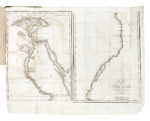 2 volumi in-8° (mm 214x130). Pagine: XIV, 451, [1]; [4], 350, [2]; con la carta di errata e 3 carte di tavola ripiegate di cui un ritratto dell'autore in antiporta ed una mappa del corso del Nilo. Trascurabili segni del tempo e fioriture sulle carte di tavola, ultima carta del primo fascicolo staccata, a p XIV del primo volume e a p 357 del secondo volume un rinforzo ungo il margine interno, complessivamente una bella copia. Mezza pelle coeva con piatti marmorizzati, titoli e fregi in oro al dorso. [SI AGGIUNGE:] Acerbi Giuseppe, Voyage au Cap-Nord, par la Suede, la Finlande et la Laponie... A Paris: chez Levrault, Schoell & C.ie., 1804, in 3 volumi in-8° non collazionati ma scompleti delle tavole. (5)