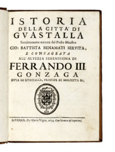 Benamati Giovanni Battista, Istoria della citta' di Guastalla... In Parma: per Mario Vigna, 1674.