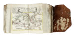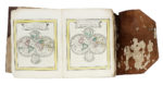 In-4° (mm 202x165). Frontespizio a doppia pagina entro bella cornice, seguito da carta di testo ripiegata con indice di 101 tavole a doppia pagina, tutte presenti e in fine acquerellatura coeva. Aggiunta sciolta in fine, sebbene non elencata nell'indice, la 102a mappa con territori russi (con perdite d'inciso). Allegato anche un planisfero ripiegato, datato 1761. Le mappe hanno dimensioni diverse, alcune sono ripiegate più volte. Margini talora rifilati e con perdite di testo e d'inciso, occasionali gallerie di tarlo ad alcune mappe e in margine, strappi, restauri e pallidi aloni. Mappa 73 con foro centrale con perdita d'inciso. Legatura coeva a busta in piena pelle flessibile (sbucciature e mancanze). (1) Raro a trovarsi completo delle 102 tavole. Secondo quanto riportato nella prefazione, l'opera fu pubblicata dopo la conclusione della guerra di successione spagnola, quindi successivamente al 1714.