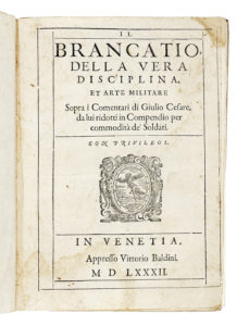 Brancaccio Giulio Cesare, Il Brancatio, della Vera Disciplina, et Arte Militare sopra i Comentari di Giulio Cesare... In Venetia: appresso Vittorio Baldini, 1582.