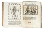 In-4° (mm 212x157). Pagine [32], 1-544, [4], 545-589, [3] e [2] carte di tavole ripiegate. Titoli all'occhiello, frontespizio in rosso e nero con illustrazione xilografica, molte illustrazioni grandi in legno nel testo. Nota di possesso manoscritta all'occhiello, margine inferiore del frontespizio rifilato. Lavorini di tarlo nel testo da *1 a B3, gora al centro delle pagine da *2 a A4. Alcune carte con inchiostro debole. Forellino a N4. Strappetto al margine inferiore di 2B6. Alcune carte ingiallite, altre arrossate o brunite, altri trascurabili segni del tempo. Piena pergamena con titoli manoscritti al dorso (difettini). (1) Questa edizione è una ristampa della versione riveduta da Lorenzo Pignoria nel 1615 dell'opera di Vincenzo Cartari, Le Imagini de i Dei de gli Antichi, un compendio dedicato alle divinità greco-romane. Pignoria trasformò l'opera originale orientandola verso una storia dell'idolatria, e vi aggiunse una Seconda Parte incentrata sulle divinità "indiane". In questo trattato, mette a confronto le raffigurazioni di idoli messicani con l'iconografia dell'antico Egitto, includendo anche una serie di figure "giapponesi", tratte dai resoconti dei missionari gesuiti. Un aspetto rilevante del lavoro di Pignoria fu la critica alle illustrazioni presenti nelle edizioni precedenti dell'opera. Per questo motivo commissionò allo xilografo Filippo Ferroverde una nuova serie di incisioni su legno, basate su ricerche archeologiche e reperti reali, abbandonando le rappresentazioni derivate unicamente da fonti testuali.