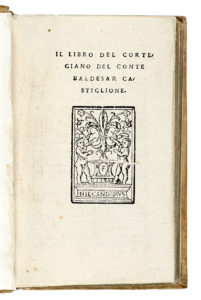 Castiglione Baldassarre, Il libro del cortegiano... In Firenze: per li heredi di Philippo di Giunta, nell'anno 1531 del mese d'Aprile.