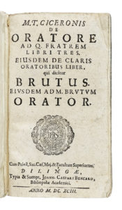Cicero Marcus Tullius, De oratore... Dilingae: Caspari Bencard, 1693.