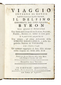 Clerke Charles, Viaggio intorno al mondo fatto dalla nave inglese il Delfino comandata dal capo-squadra Byron... In Firenze: presso Giuseppe Allegrini, 1768.