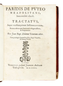 Dal Pozzo Paride, Tractatus super reassumptione instrumentorum... Venetiis: apud Joannem Andream Valuassorem, 1572.
