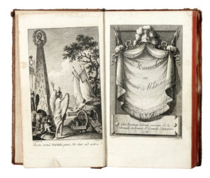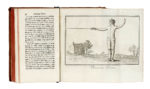 In-12° (mm 164x95). Pagine XXII, [1], 24-181, [1] e 14 carte di tavole calcografiche più volte ripiegate. Carte fresche con minimi segni del tempo. [RILEGATO DOPO:] Gaigne Alexis Toussaint de, Manuel ou Journée militaire. A Paris: chez Hardouin, 1776. Pagine XII, 228 e [2] carte di tavole calcografiche. Frontespizio e antiporta calcografici, fregi xilografici. Qualche piccola fioritura. Al foglio di guardia anteriore nota di possesso manoscritta "Tenente Colonnello della Guardia Reale". Piena pelle coeva con decori e titoli dorati in tassello al dorso (difettini). (1) I OPERA: Prima edizione di questo raro manuale di scherma composto da Demeuse, maestro d'armi a Liegi tra il 1763 e il 1785, e dedicato al conte Graillet, di cui si ha le bande d'armatura nella dedica. L'autore insiste sull'importanza del "sentire il ferro", ovvero la capacità di reagire in modo originale al movimento e al contatto dell'avversario. Il volume è corredato da tavole illustrative con le varie posizioni e sfilate.