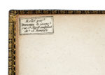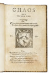In-8° (mm 146x92). Carte: [123], assente l'ultima bianca con la marca editoriale. Al frontespizio stemma inciso in legno contenente l'acrostico formato dalle iniziali degli pseudonimi usati da Teofilo Folengo: M[erlino], L[imerno] e F[ùlica]. All'inizio di ogni selva elegante xilografia. Buono stato di conservazione, se non per qualche leggerissima arrossatura e macchietta sparsa, piccoli restauri marginali al frontespizio senza perdite di testo e alla carta a4. Sguardie con ex-libris di appartenenza e note manoscritte, etichetta del rilegatore Nicolas-Denis Derome (1731-1790), così inscritta "Relié par Derome le jeune Rue Saint-Jacques, au-dessus de Saint-Benoît". Pieno marocchino dorato su cartoni di Nicolas-Denis Derome dit le Jeune, piatti con larga cornice eseguita da tre ferri a rotella con decori diversi e delimitati da un sottile filetto in oro; unghiature con decoro a duplice e diversa rotella in oro, labbri decorati, dorso a sei compartimenti senza nervi decorato con un fitto reticolo in oro, nel secondo compartimento il titolo e al basso la data "1527". Fogli di guardia e sguardia in seta rosa, tagli dorati. (1) Prima edizione del Chaos del Folengo, la seconda vide la luce nel 1546 sempre per i tipi dei Sabio. Il Chaos si apre con un prologo in prosa, in cui Paola, Corona e Livia, rispettivamente madre, sorella e nipote di Folengo, riflettono sull'attività dello scrittore e sulla sua uscita dal chiostro. Seguono tre "Argomenti", dove ciascuna offre una diversa interpretazione dell'opera. Il testo si articola poi in tre "selve", animate dai personaggi Merlino, Limerno e Fùlica, alter ego di Folengo, che dialogano rispettivamente in macaronico, volgare e latino, usando vari metri poetici: sonetti, terzine, canzoni, distici. In un passaggio curioso (carta t4), si trova una delle prime testimonianze di lettura divinatoria basata sul significato delle singole carte dei Tarocchi. Triperuno racconta di essere stato invitato da alcuni amici a interpretare i Trionfi, componendo un sonetto per ciascuno secondo la carta estratta. L'episodio si chiude con un sonetto sempre ispirato ai Tarocchi. Cfr.Adams F, 685; Kaplan 1986 pag.8-9.