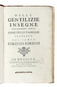 Foresto Foresti, Delle gentilizie insegne volgarmente dette arme delle famiglie... In Brescia: Per Marco Vendramino all'Insegna di S. Gaetano, 1745.