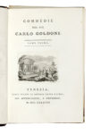 47 volumi in-8° (mm 176x120). Testo non collazionato, comunque bella copia con occasionali tracce del tempo. Completo dei 44 tomi delle Opere e dei 3 tomi delle Memorie del Sig. Carlo Goldoni. Esemplare scompleto del ritratto dell'Autore in antiporta del primo volume, come usuale, ma completo del ritratto all'inizio delle Memorie. Vignetta calcografica ai frontespizi, occhietto in principio di ogni tomo con il titolo generale dell'opera, con moltissime illustrazioni incise in rame poste a mo' di testatine da de Pian, Zuliani e altri su disegni di Novelli. Splendida legatura di inizio ottocento in mezza pelle con titoli e fregi in oro al dorso, piatti marmorizzati e tagli spruzzati. Qualche volume con piccole sbucciature. (47) L'edizione Zatta costituisce la «massa più copiosa di cose Goldoniane, drammatiche stampate lui vivo [...] l'Autore, oltre ad accordare il proprio consenso, si era impegnato a fornire all'editore anche molti manoscritti inediti [...]. In capo ad ogni atto vi è un'altra piccola vignetta che richiama i punti più salienti di esso» (Parenti, 143). Cfr. Brunet II, 1650; Gamba 1954; Morazzoni 234. Lotto non passibile di restituzione.