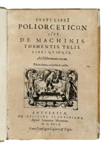Lipsius Justus, Poliorceticōn siue de machinis. Tormentis. Telis. Libri quinque... Antuerpiae: ex officina Plantiniana, apud Ioannem Moretum, 1599.